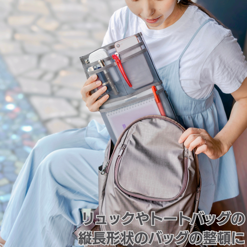 リュックやトートバッグの 縦長形状のバッグの整頓に